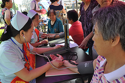 烈日炎炎下,是認真專注的醫護人員,是排隊等待義診的社區居民。“這次義診活動是為了提高居民們的健康意識,普及一些健康知識。”郭發江介紹到,“居民們很少會主動來醫院體檢,除非是身體出現了某種狀況。有些居民長年都沒體檢過,病情還是早發現早治療的好!”據了解,這次義診活動中也有部分居民檢查出之前并未察覺的病情,郭主任認真地將居民問及的癥狀記錄下來,寫好診斷建議交給他們,嚴謹的治醫態度和無私的情懷贏得了現場問診居民的一致好評。